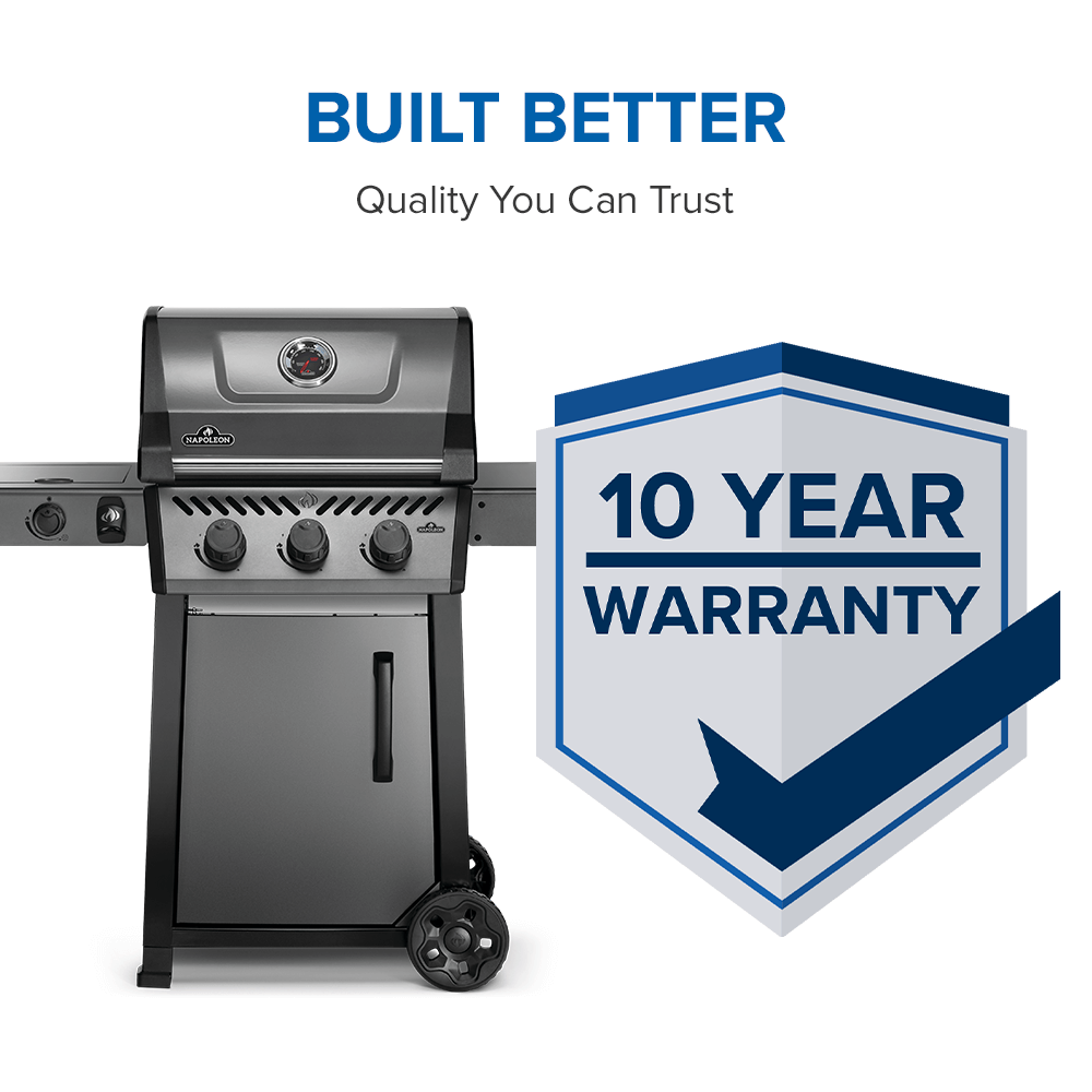 Napoleon’s iconic cast iron cooking grids resist rust, provide even heat, prevent food from falling through and create distinctive sear marks